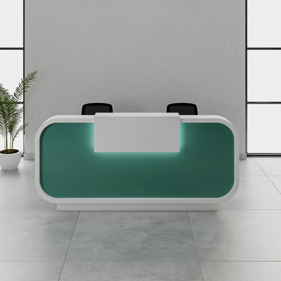 upgrade your front office with the odin reception desk, a perfect blend of functionality, style, and contemporary chic. Designed to make a lasting first impression, this reception desk provides a lively and chic ambiance for any office environment. With careful detail in its design, the odin model comes with elegant led stripes that bring a sense of contemporary sophistication. It has a mobile pedestal for versatile storage and a round grommet for easy cable management—both style and functionality. From corporate offices to clinics, showrooms, and co-working offices, the odin reception desk is designed to enhance your brand identity while maintaining order and efficiency in your workspace.